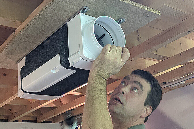 De luchtregelaars van de ComfoVar Aero zijn los van elkaar, flexibel te installeren aan het plafond of aan de wand. Hierdoor nemen ze veel minder ruimte in dan een WTW-unit. Ideaal voor appartementen waarin iedere vierkante meter telt!