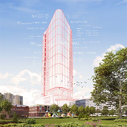 Het systeem maakt het mogelijk met één centrale luchtbehandelingskast een volledig appartementencomplex te ventileren zonder daarbij in te leveren op kwaliteit. In de appartementen monitoren CO₂ sensoren de binnenluchtkwaliteit. Is deze onvoldoende? Dan zorgen de druppelvormige luchtverdelers van de ComfoVar Aero automatisch voor exact de juiste hoeveelheid ventilatie. High-tech technologie, ultracompact vormgegeven.