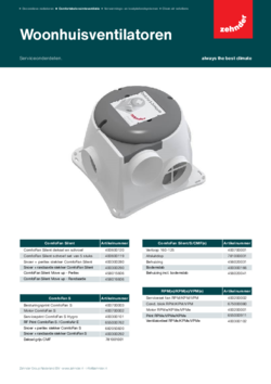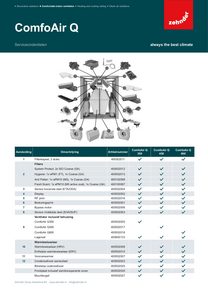 Alle serviceonderdelen op één pagina, om te voorkomen dat je als monteur onnodig lang op zoek bent naar het passende serviceonderdeel. Je vindt het juiste vervangende onderdeel snel en gemakkelijk door op het type ventilatie-unit te klikken in de lijst hieronder. Zoek het onderdeel op in de exploded view of tabel in het bijbehorende document en bestel het onderdeel vervolgens bij jouw leverancier. Zo heb je gegarandeerd een passend serviceonderdeel van dezelfde kwaliteit.