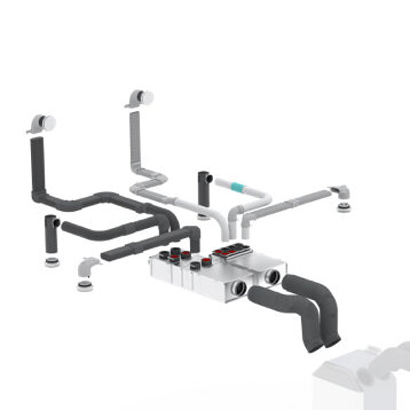 ComfoClime en ThermalShield zijn plug & play. Ofwel: flexibel en makkelijk te installeren. Zet de ComfoClime met het meegeleverde verloopstuk handig op de ComfoAir Q wtw-unit. Daarna schuif je de voorgeïsoleerde onderdelen van ThermalShield in elkaar, voor een condensvrij verdeelsysteem. Geen lijm nodig.