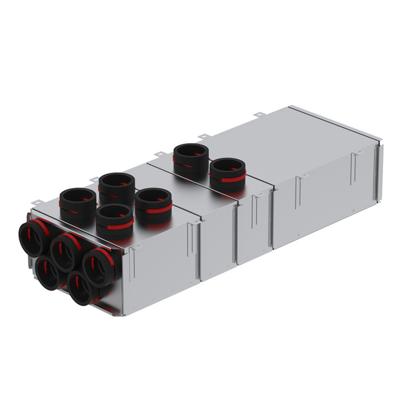 Verdeler ComfoWell Therm verdeelt verse lucht vanuit het hoofdkanaal van de ventilatie-unit over meerdere ComfoTube Therm 90 luchtverdeelslangen. Met slimme schuifprofielen verbind je de componenten handig met elkaar. En maak je het systeem luchtdicht.